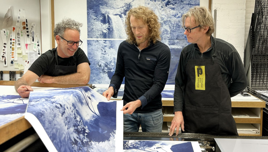 Danie Mellor - working with APW printers Simon White and Martin King in the APW Studio July 2025